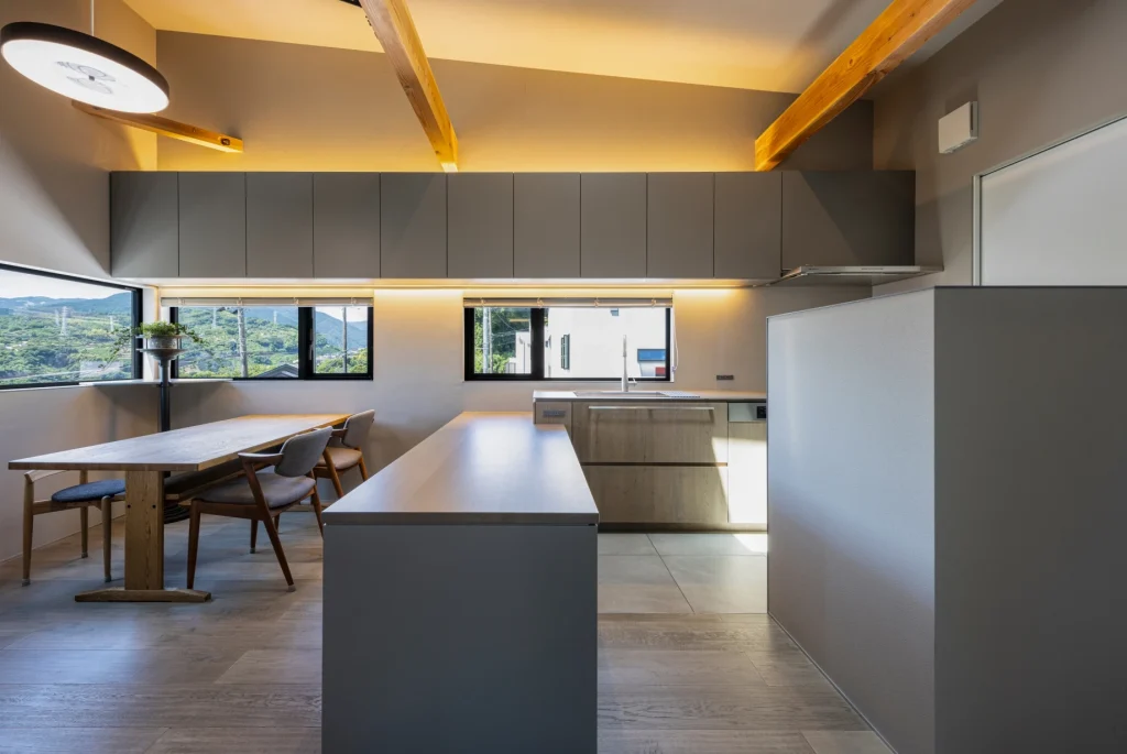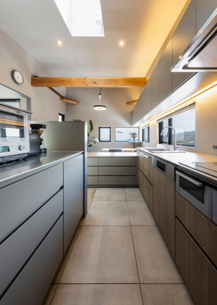 From the dining kitchen, the landscape is framed like a painting—offering a quieter, more meditative contrast to the dynamic view from the living area.
