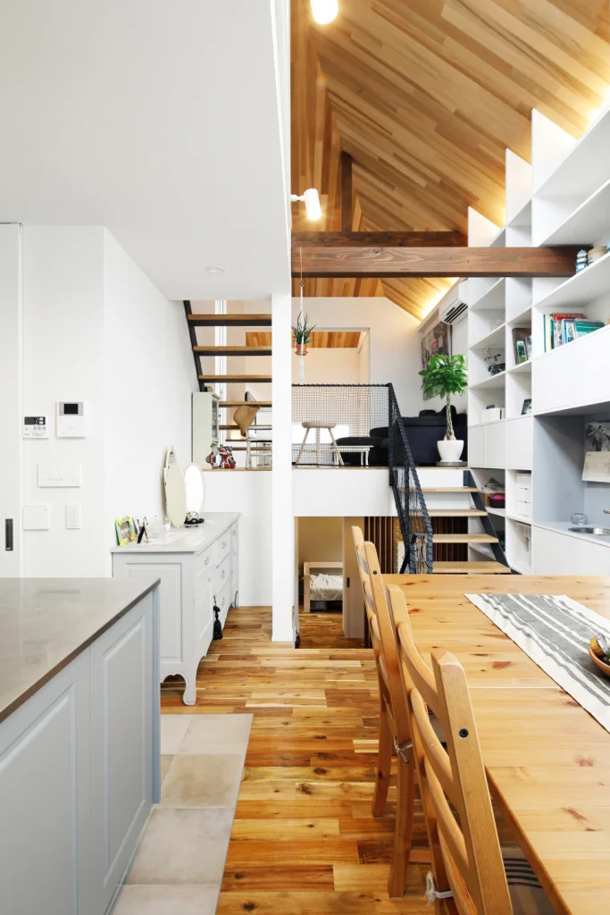 Skip-floor levels create a spatial openness that extends not just horizontally but vertically as well, with floors suspended in open voids for a three-dimensional feel.
