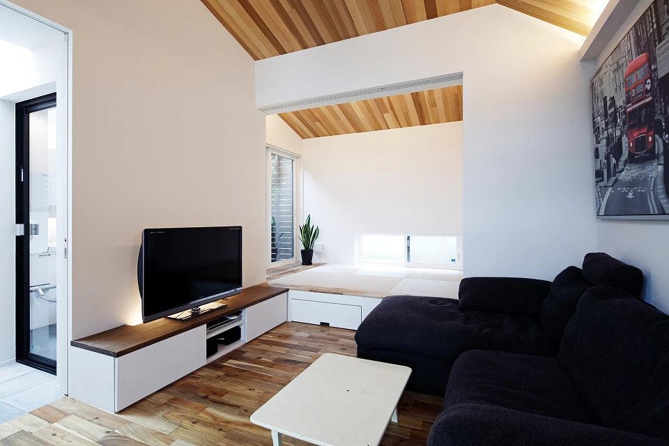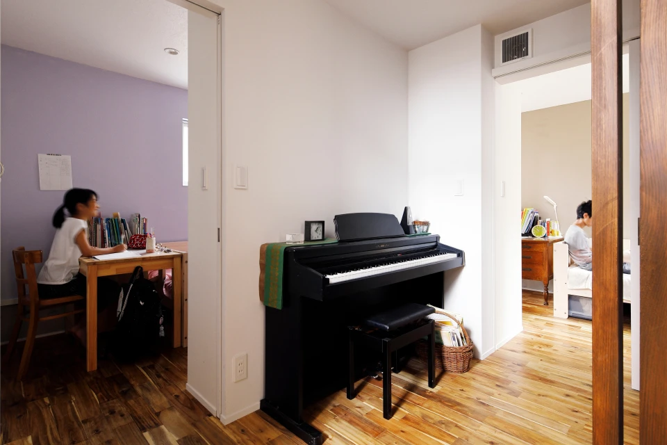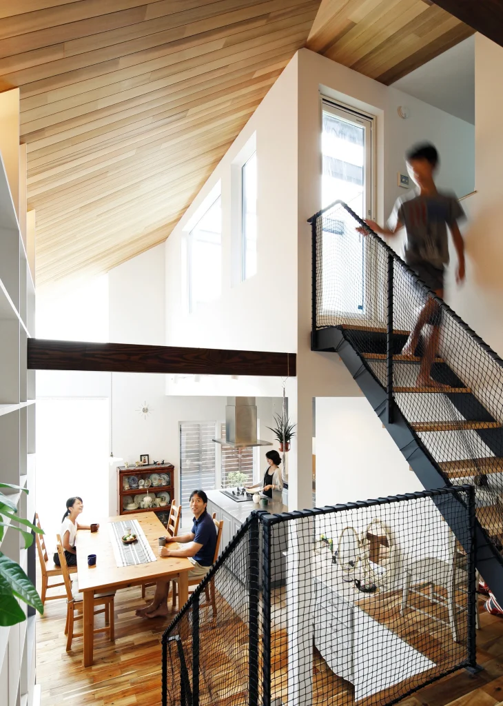 The semi-basement first floor features a whole-house heating system. Combined with airtight, high-insulation construction, the home remains warm from entrance to bathroom using minimal energy.