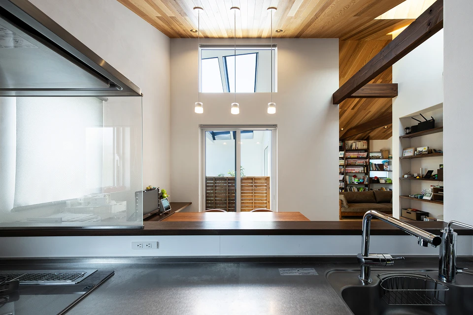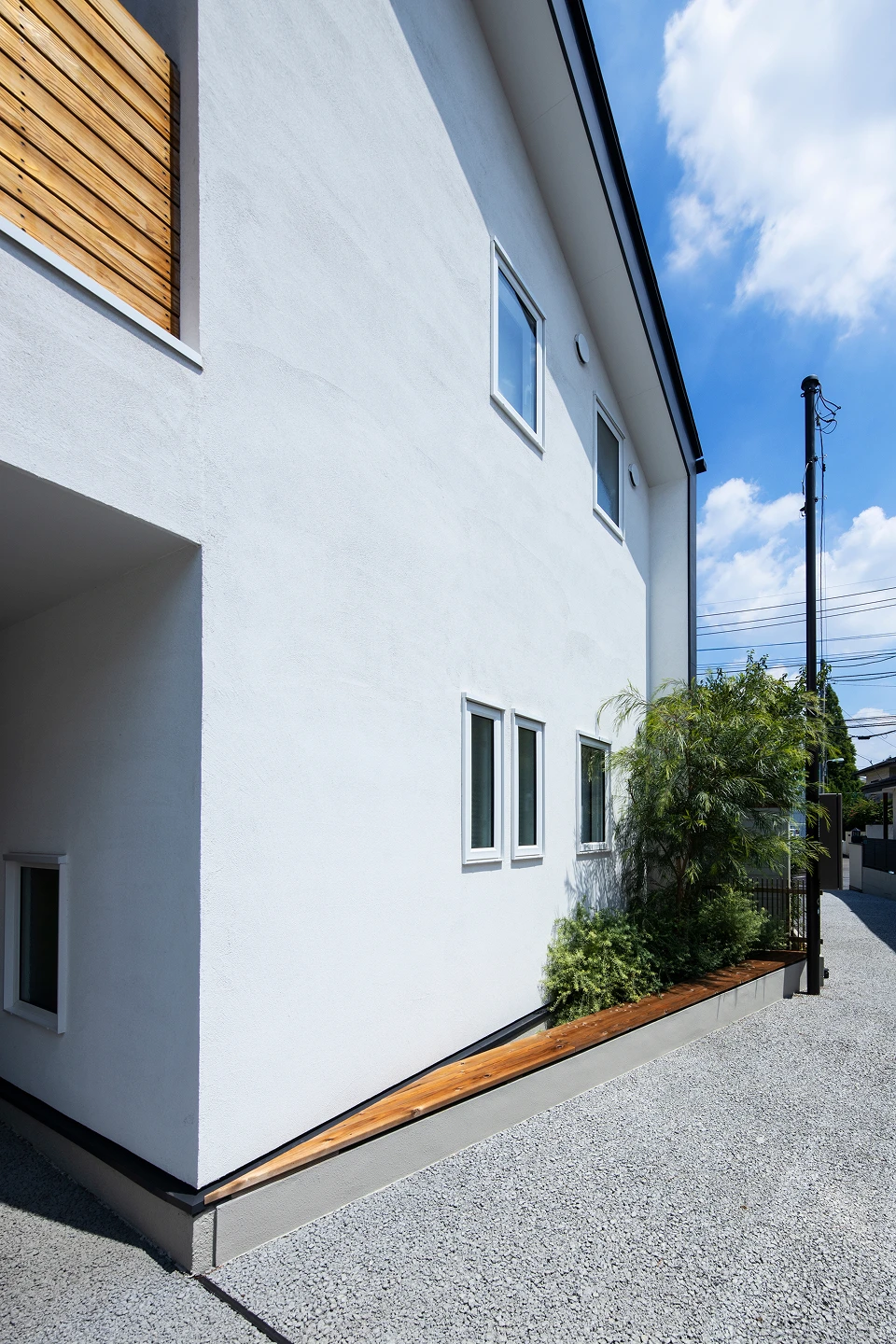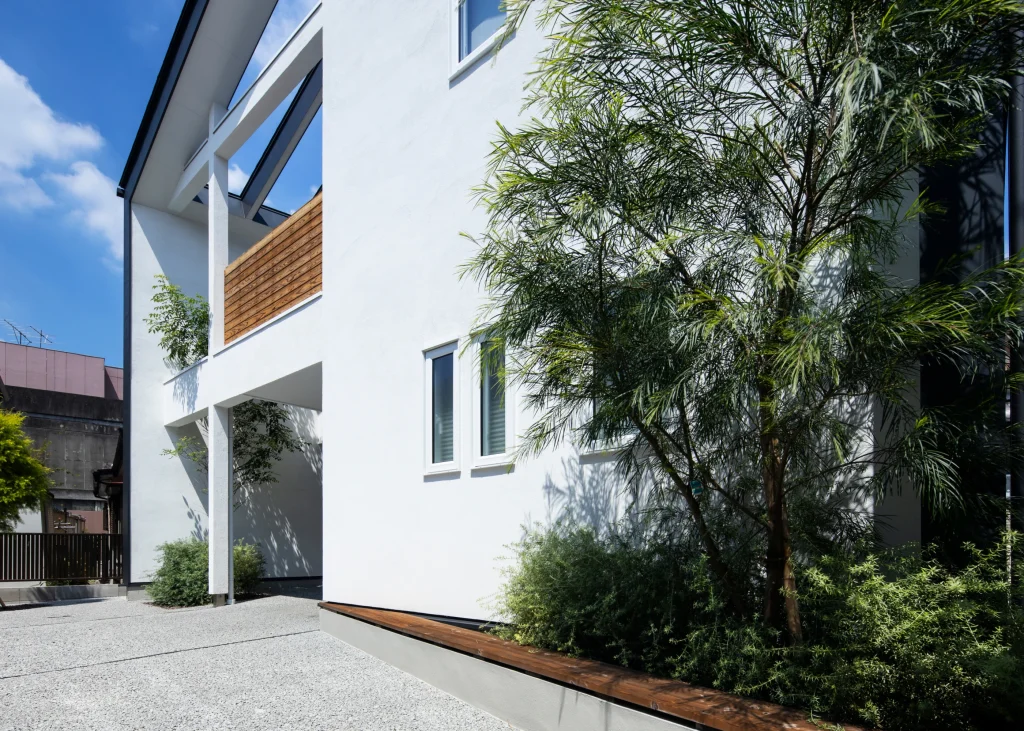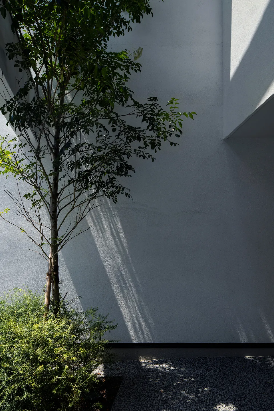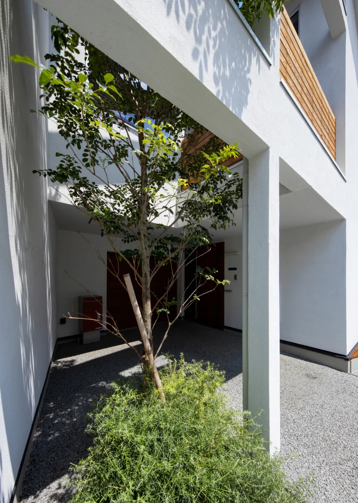 To ensure privacy and proper distance from neighboring homes, the garden, entry path, and terrace are all incorporated within the building footprint. This softens the boundary between inside and outside.